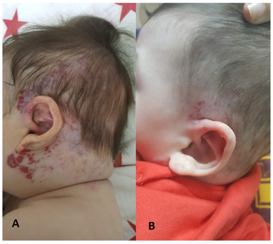 - Darrow, D.H.; Greene, A.K.; Mancini, A.J.; Nopper, A.J.; Antaya, R.J.; Cohen, B.; Drolet, B.A.; Fay, A.; Fishman, S.J.; Friedlander, S.F.; et al. Diagnosis and Management of Infantile Hemangioma. Pediatrics 2015, 136, e1060–e1104. [Google Scholar] [CrossRef]