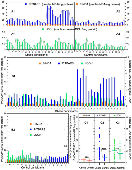 | Obesity/Control Samples | Obesity PrMDA | Control PrMDA | Obesity PrTBARS | Control PrTBARS | Obesity LOOH | Control LOOH |