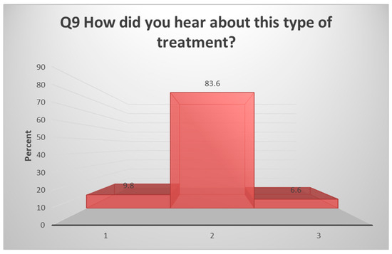The authors constructed validated questionnaires that were orally administered and linguistically modified to Arabic. They comprised two sections: the initial segment, which aimed to gather essential demographic details such as caregivers’ age, education level, residency, and the presence of siblings affected with a cleft. The second part of the questionnaire comprised ten specifically crafted closed-ended questions to assess caregivers’ experiences with using lip taping as an orthopedic treatment for their infants. Q9 was explained by using a histogram, which shows the source of information about orthopedic treatment (whether it was a doctor, the media, or other families). Ethical approval was secured from the Institutional Review Board (IRB) at the College of Dentistry, University of Baghdad, on 12 January 2023 (reference number: 765, project 765423). The study adhered to the principles outlined in the World Medical Association Declaration of Helsinki. Participants provided written informed consent, and all identifiable data were meticulously anonymized to uphold participant confidentiality.