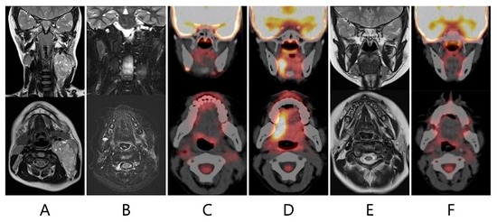 - Schroeder, C.; Lee, J.H.; Tetzner, U.; Seidel, S.; Kim, S.Y. Comparison of diffusion-weighted MR imaging and (18)F Fluorodeoxyglucose PET/CT in detection of residual or recurrent tumors and delineation of their local spread after (chemo) radiotherapy for head and neck squamous cell carcinoma. Eur. J. Radiol. 2020, 130, 109157. [Google Scholar] [CrossRef] [PubMed]