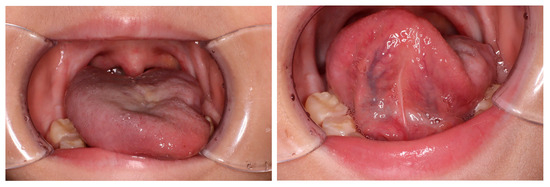 Physical examination at 16 months after completion of the initial therapy revealed atrophy of the left side of the tongue and deviation to the ipsilateral side indicating left hypoglossal nerve paralysis.