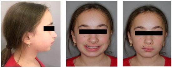 A 14-year-old Caucasian patient from the Department of Paediatric Endocrinology and Diabetology was referred to the Division of Facial Abnormalities, Department of Dentofacial Orthopaedics and Orthodontics of the Wroclaw Medical University, Poland, seeking an orthodontic treatment and solutions to her aesthetic and functional disorders. Extraoral photos (Figure 1) and frontal examination revealed increased exposure of the incisor. The profile was convex and characterized by a mandibular retrusion and an increased lower facial height.