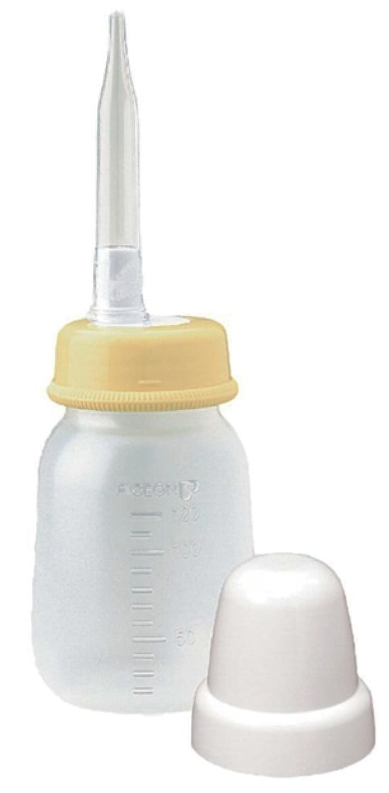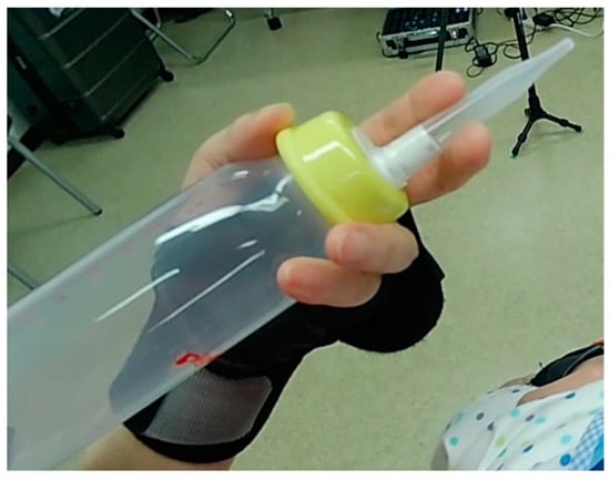 The Long Nipple has two distinguishing characteristics compared with ordinary feeding bottles: the nipple is long, narrow, and made of soft material; and milk spills out when the bottle is tilted or when pressure is applied to the nipple [22]. The Medela Special Needs Feeder—which has a similar function to that of the Long Nipple—is a feeding bottle with a mechanism in which milk is pushed out when the nipple is pinched between the fingers. The material of the Medela nipple is relatively hard and requires pressure generated by the thumb and index fingers. By contrast, the Long Nipple is very soft; thus, the pressure generated by the index and middle fingers is sufficient for milk to flow out. Although it is possible to use the thumb, the elbow must be raised to tilt the bottle to push the milk out, and the arm tires when feeding this way for a long time. Pinching the Long Nipple with the index and middle fingers is more comfortable, while angling the bottle with the wrist.