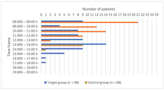For the purposes of this research, electronic records of patients in the hospital information system (IN2 BIS®) were reviewed retrospectively. The search included all patients who were surgically treated through the Day Surgery Unit at the Children’s Hospital Zagreb with various diagnoses from 1 January 2021 to 31 December 2023. The criteria for the formation of the target group (n = 68) were all surgically treated patients through the Day Surgery Unit, who required hospitalization and a hospital stay of at least one night, while the exclusion criterion was a lack of data for analysis. All children who undergo surgical treatment at the Day Surgery Unit of the Children’s Hospital Zagreb are admitted to the Unit between 07:00 a.m. and 08:00 a.m. Parents receive instructions for a stay in the ward from the medical staff during the last clinical examination by the surgeon who initiated the surgical treatment. Upon admission to the Unit, all children are clinically examined by an anesthesiologist immediately before surgery. After surgery and post-operative care, the child is expected to be discharged from the hospital on the same day, which does not happen if there is a medically justified reason either from the anesthesiologist or the surgeon. If the child does not meet the criteria for discharge on the same day, they are admitted to the hospital ward where they stay for at least one night until the next morning. For the purposes of the control group (n = 68), the electronic records of patients treated at the Day Surgery Unit of the Children’s Hospital Zagreb, who did not require a stay in the hospital, i.e., were discharged from the hospital on the same day, were processed. Patients were randomly selected in such a way that they were comparable in terms of age and gender in relation to the target group. Patients who did not have all the necessary data for analysis were also excluded from the study.