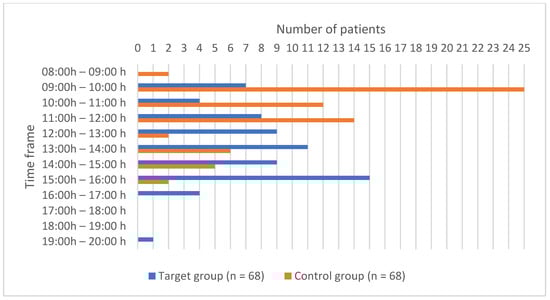 Due to anesthetic contraindications, the surgical procedure was previously postponed in only one patient in both the target and control groups (p = 1.000). The median anesthesiology examination in the target group was 1 (IQR 0, 5) day earlier, while in the control group, it was performed 2 (IQR 0, 5) days earlier (p = 0.269). Other anesthesiology parameters of interest are shown in Table 1.
