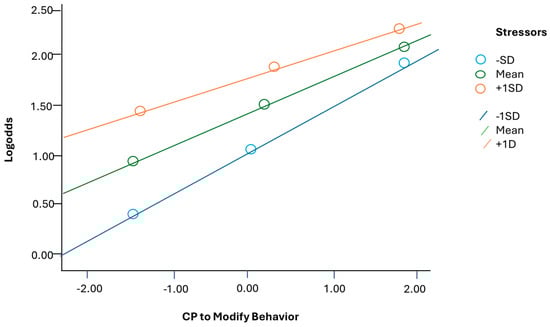 | CP to modify behavior × Stress level | −0.14 | 0.08 | −1.79 | 0.07 |