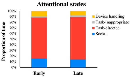 Attentional engagement: We coded videos of early and late DJT sessions using a behavioral coding software called Datavyu (v.1.3.8; https://datavyu.org/) to evaluate the children’s attentional focus during the training. The children’s attention during the session was categorized as being (a) task-directed (child is looking at the path they are traversing or at the props/objects that they are interacting with during the UE tasks), (b) socially directed (child is looking at trainers, clinicians, peers, etc.), (c) directed towards device handling (child is looking at the joystick–hand interface or parts of the toy that are related to moving the toy, such as the wheels), and (d) task-inappropriate (child is distracted, zoned out, looking elsewhere, or not engaged in the training activities). We were interested in the proportion of task-directed attention that we used as a proxy for the children’s level of engagement with the training activities.