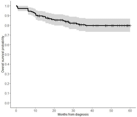 Our study, spanning from 2004 to 2019, reveals a median age at diagnosis of 2 years, aligning with the findings from other studies indicating a median age of 30–37 months [8]. We noted a metastatic rate of 4.2% and an equal male-to-female ratio of 1:1, similarly to the 4.9% metastatic rate reported by González et al. in their analysis of 143 cases [17]. In contrast, Messinger et al. examined 350 cases from the PPB registry across 42 countries from 1988 to 2012, revealing a higher metastatic rate of 9% [4]. Both studies reported an equal male-to-female ratio. Initially described in 1988, the prognosis for patients with PPB was thought to be poor [17]. Previous studies reported survival rates of approximately 50–70% [3,4,8,15], significantly lower than our reported 5-year overall survival of 79%. Earlier diagnosis, advancements in surgical techniques, the development of novel chemotherapeutic agents, and a deeper understanding of the disease itself are likely factors contributing to improved survival rates in PPB [18]. Extrapulmonary involvement [8], the presence of metastasis at diagnosis [4], the degree of surgical resection [8,9], and tumor size [15] are some of the factors that were shown to affect the prognosis of patients with PPB. In our cohort, the presence of metastasis at the time of diagnosis was identified as the only factor associated with a worse prognosis.