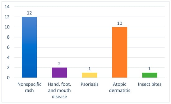 Half of the infants had a previous misdiagnosis, most commonly nonspecific rash (24%) and atopic dermatitis (20%); four infants (8%) had another misdiagnosis (Figure 2).