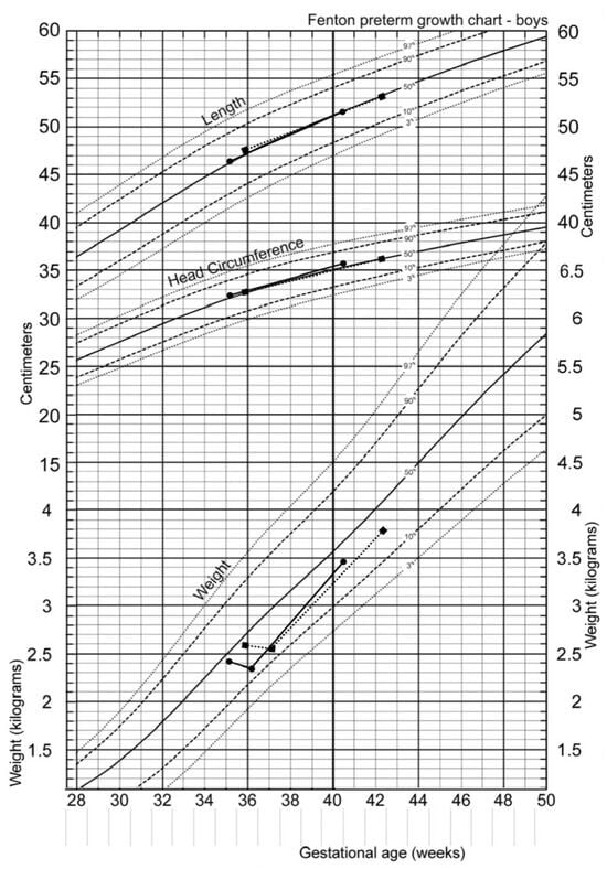 - Fenton, T.R.; Kim, J.H. A systematic review and meta-analysis to revise the Fenton growth chart for preterm infants. BMC Pediatr. 2013, 13, 59. [Google Scholar] [CrossRef] [PubMed]