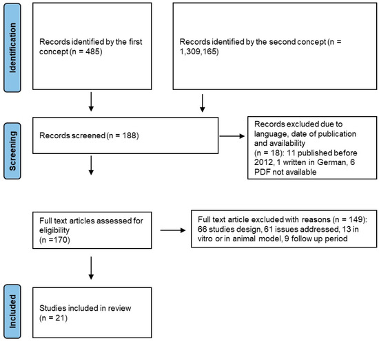 Among the 188 previously identified publications, 18 articles were excluded before reading: