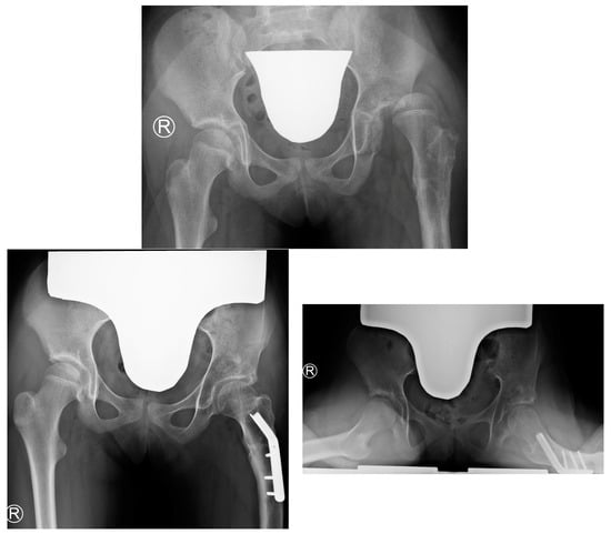 - De Salvo, S.; Sacco, R.; Mainard, N.; Lucenti, L.; Sapienza, M.; Dimeglio, A.; Andreacchio, A.; Canavese, F. Total Hip Arthroplasty in Patients with Common Pediatric Hip Orthopedic Pathology. J. Child. Orthop. 2024, 18, 134–152. [Google Scholar] [CrossRef] [PubMed]
