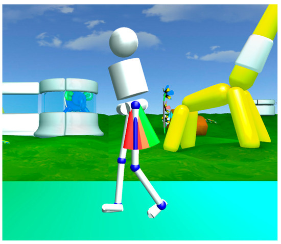 During VR feedback, an avatar portrayed the subjects’ real-time movements and provided visual and auditory rewards as motivation to achieve the targeted gait modification. An example of such VR feedback is pictured in Figure 2.