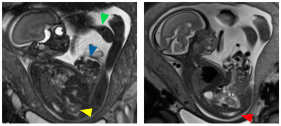- Weiss, D.A.; Oliver, E.R.; Borer, J.G.; Kryger, J.V.; Roth, E.B.; Groth, T.W.; Shukla, A.R.; Mitchell, M.E.; Canning, D.A.; Victoria, T. Key Anatomic Findings on Fetal Ultrasound and MRI in the Prenatal Diagnosis of Bladder and Cloacal Exstrophy. J. Pediatr. Urol. 2020, 16, 665–671. [Google Scholar] [CrossRef] [PubMed]