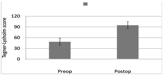Comparison of preoperative and postoperative Tegner-Lysholm score.