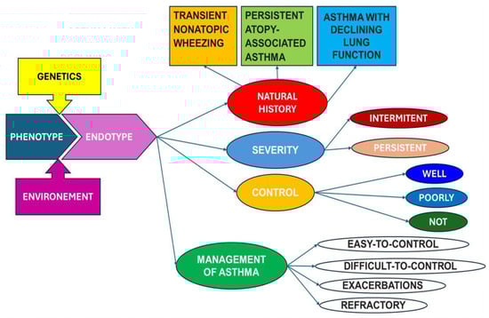 Evolutionary patterns of childhood asthma based on natural evolution and response to management from phenotype to endotype.