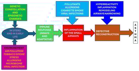 The impact of environmental factors on asthma onset in children is multifaceted, encompassing various elements that interact in complex ways [40,41,42].