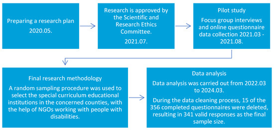 In the counties concerned, 20 special curriculum schools were selected using a random sampling procedure. The heads of the institutions were contacted for permission to conduct the research. Finally, 12 schools agreed to participate in the research. As several schools declined to participate in the research, in order to increase the sample size, we sought the help of NGOs working with people with disabilities to reach the target group.