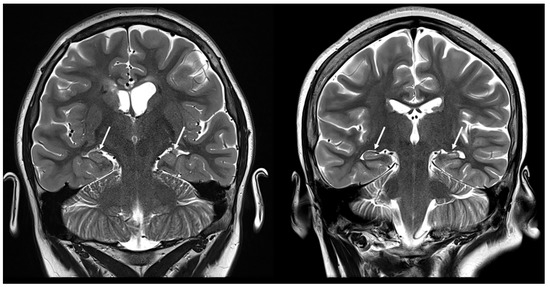 Coronal T2-weighted images demonstrating hippocampal abnormalities in two patients with tuberous sclerosis (10 and 12 years old, respectively).