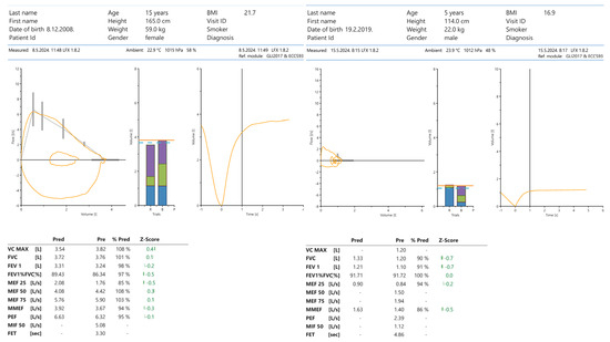 - Kirkby, J.; Bountziouka, V.; Lum, S.; Wade, A.; Stocks, J. Natural variability of lung function in young healthy school children. Eur. Respir. J. 2016, 48, 411–419. [Google Scholar] [CrossRef]