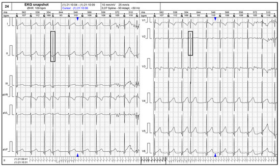 24–h ECG Holter monitoring showing a supraventricular ectopic beat (black rectangular shapes) in a neonate with tuberous sclerosis.