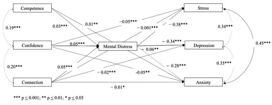 | Confidence -> Stress | −0.045 | 0.004 | −11.06 | <0.001 | −0.053 | −0.036 |
