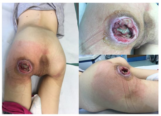 - Pignatti, M.; D’Arpa, S.; Roche, N.; Giorgini, F.A.; Lusetti, I.L.; Lorca-Garcia, C.; De Santis, G.; Berenguer, B. Surgical treatment of pressure injuries in children: A multicentre experience. Wound Repair Regen. 2021, 29, 961–972. [Google Scholar] [CrossRef]