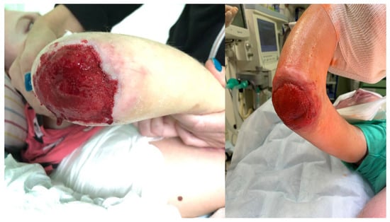 - Meuli, M.; Koenigs, I.; Schiestl, C.; Neuhaus, K. Management of “Difficult” Wounds. Eur. J. Pediatr. Surg. 2013, 23, 365–374. [Google Scholar] [CrossRef]