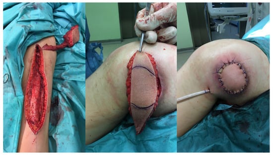 - Lin, H.; Hou, C.; Chen, A.; Xu, Z. Treatment of Ischial Pressure Sores Using a Modified Gracilis Myofasciocutaneous Flap. J. Reconstr. Microsurg. 2010, 26, 153–157. [Google Scholar] [CrossRef]