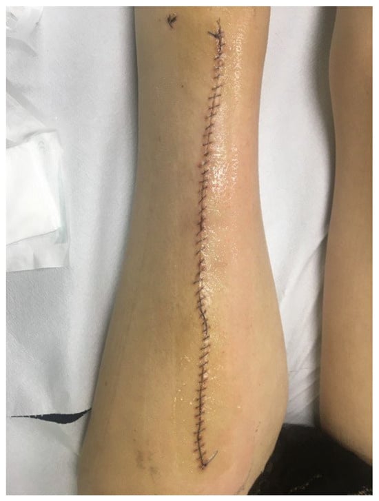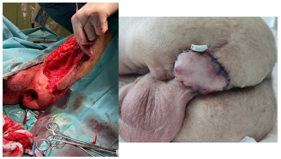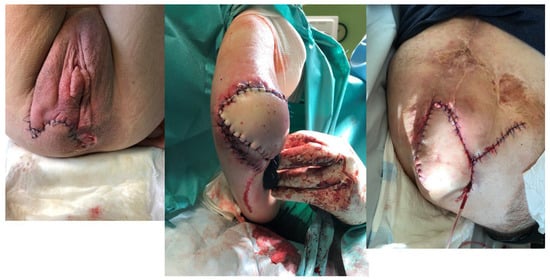 - Wang, C.-Y.; Shih, Y.-J.; Chou, C.-Y.; Chen, T.-M.; Chen, S.-G.; Tzeng, Y.-S. Successful Pedicled Anterolateral Thigh Flap Reconstruction for a Recurrent Ischial Pressure Ulcer: A Case with Multiple Recurrences over a 7-year Follow-up. Wounds 2015, 27, E12–E15. [Google Scholar]