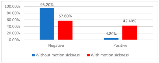 Distribution of patients according to motion sickness positive history and a positive instrumental diagnosis of peripheral vestibular dysfunction.