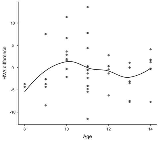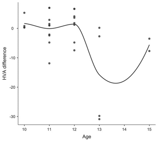 Locally estimated scatterplot smoothing between age and HVA difference in girls.