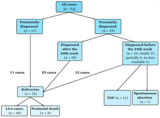 In cases detected by ultrasound, the average week of detection was 25.24 gestational weeks (n = 64, no data available in three cases).