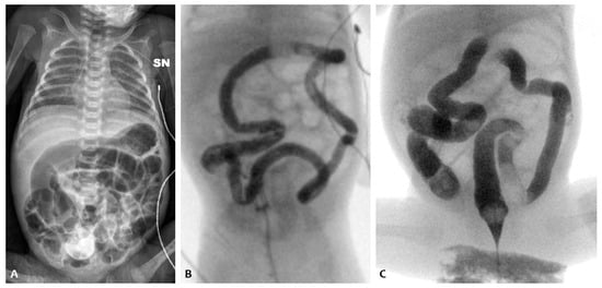 - Desoky, S.; Kylat, R.; Udayasankar, U.; Gilbertson-Dahdal, D. Managing Neonatal Bowel Obstruction: Clinical Perspectives. Res. Rep. Neonatol. 2018, 8, 19–32. [Google Scholar] [CrossRef]