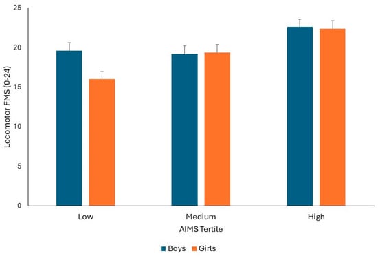 Mean ± SD of Locomotor FMS scores split by sex and AIMS tertile groups.