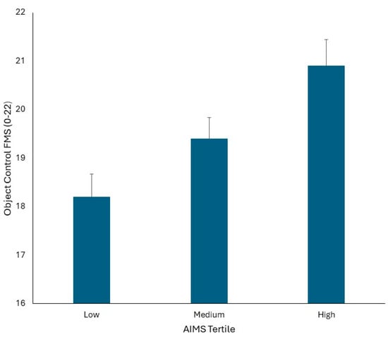 Mean ± SD of Object Control FMS scores split by sex and AIMS tertile groups.