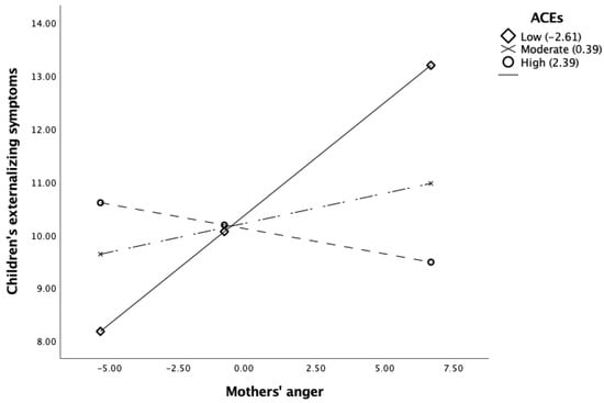 Moderating effects of mothers’ ACEs on the association between mothers’ anger and children’s externalizing symptoms.