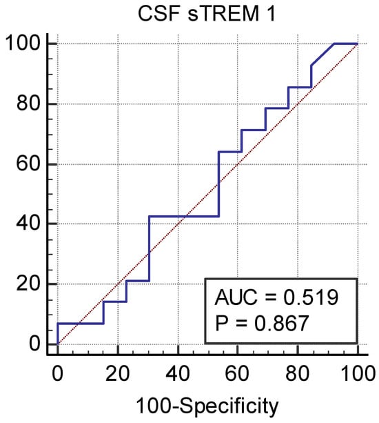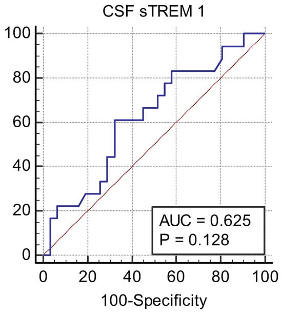 There are no data on CSF sTREM-1 levels in newborns in the literature, and studies conducted in adults have shown that CSF sTREM-1 levels can be beneficial in the diagnosis of bacterial meningitis. In a study conducted in adults, CSF sTREM-1 levels were found in those with bacterial meningitis: 82 pg/mL (0–988); in those with viral meningitis: 0 pg/mL, (0–48); and in the control group: 0 pg/mL (0–36) [5]. The cut-off value of sTREM-1 for the diagnosis of bacterial meningitis was reported to be 20 pg/mL [5]. Our study did not detect the CSF sTREM-1 level that has diagnostic value for meningitis. ROC curve analyses showed that CSF sTREM-1 resulted in a nonsignificant AUC for identifying neonatal meningitis.