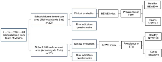 Chicago/Turabian StyleJiménez-Núñez, José Cuauhtémoc, Álvaro Edgar González-Aragón Pineda, Teresa Villanueva-Gutiérrez, Rodrigo Leopoldo Longinos-Huerta, Luis Pablo Cruz-Hervert, Adrian Lussi, and Socorro Aída Borges-Yáñez. 2024. "Erosive Tooth Wear and Associated Risk Indicators in Schoolchildren from Rural and Urban Areas of the State of Mexico: A Cross-Sectional Study" Children 11, no. 9: 1090. https://doi.org/10.3390/children11091090