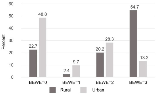 | Rural (%) n = 203 (100.0) | Urban (%) n = 205 (100.0) | ||||||