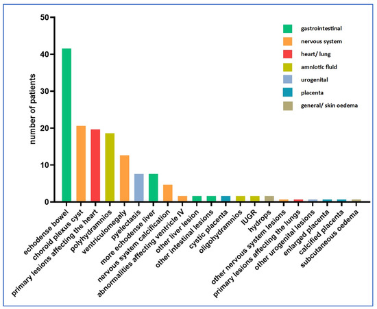 The reason for the differences in the results may be due to that Toxoplasma infection causes a wide variety of developmental abnormalities, thus leading to a corresponding variety of ultrasound findings. We may conclude that although the percentage of variation in each organ system varies within a wide range, the results processed in our study are proportionally in line with the literature.
