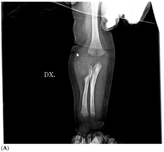 - Hausbrandt, P.A.; Leithner, A.; Beham, A.; Bodo, K.; Raith, J.; Windhager, R. A Rare Case of Infantile Myofibromatosis and Review of Literature. J. Pediatr. Orthop. B. 2010, 19, 122–126. [Google Scholar] [CrossRef] [PubMed]
