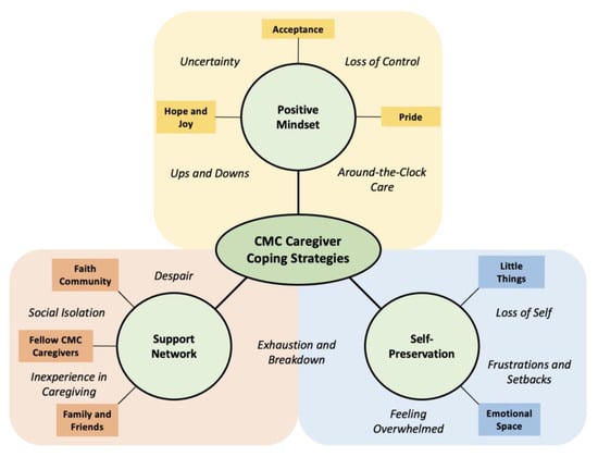 In this qualitative study, family caregivers of CMC described the strategies they used to cope with stress related to their caregiving experience. While participants reported a variety of approaches for dealing with stress and challenges, three overarching themes emerged: (1) maintaining a positive mindset, (2) developing and relying on interpersonal support networks, and (3) making time for self-preservation. This study responds to national calls for a better awareness and understanding of CMC family caregivers’ experiences [13,23]. Our findings can inform the development and implementation of services and structural reforms aiming to better support CMC family caregiver well-being [9,10,24]. More specifically, our results highlight potential future directions for psychosocial, clinical, and communication interventions targeting CMC family caregivers’ ability to cope with stress.