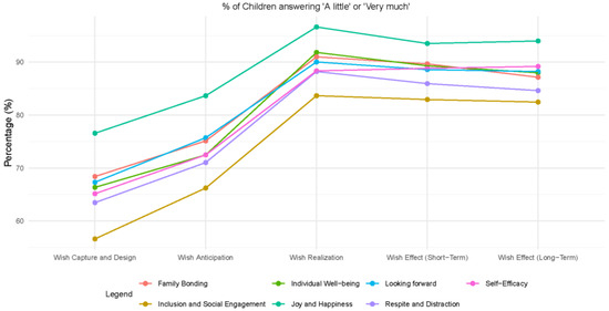 Proportion of children reporting experiencing each primary outcome “A little” or “Very much” per Wish Journey Stage.