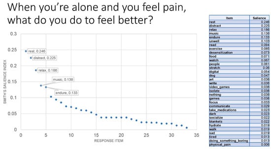 Item List with Corresponding Salience Indices in Response to Question #1: When you’re alone and you feel pain, what do you do to feel better?