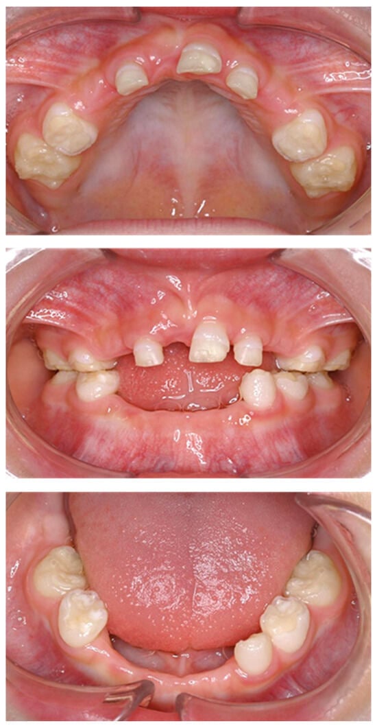 - Akitomo, T.; Asao, Y.; Iwamoto, Y.; Kusaka, S.; Usuda, M.; Kametani, M.; Ando, T.; Sakamoto, S.; Mitsuhata, C.; Kajiya, M.; et al. A Third Supernumerary Tooth Occurring in the Same Region: A Case Report. Dent. J. 2023, 11, 49. [Google Scholar] [CrossRef] [PubMed]