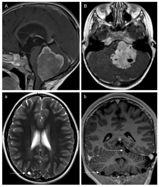 - Bühring, U.; Strayle-Batra, M.; Freudenstein, D.; Scheel-Walter, H.G.; Küker, W. MRI Features of Primary, Secondary and Metastatic Medulloblastoma. Eur. Radiol. 2002, 12, 1342–1348. [Google Scholar] [CrossRef] [PubMed]