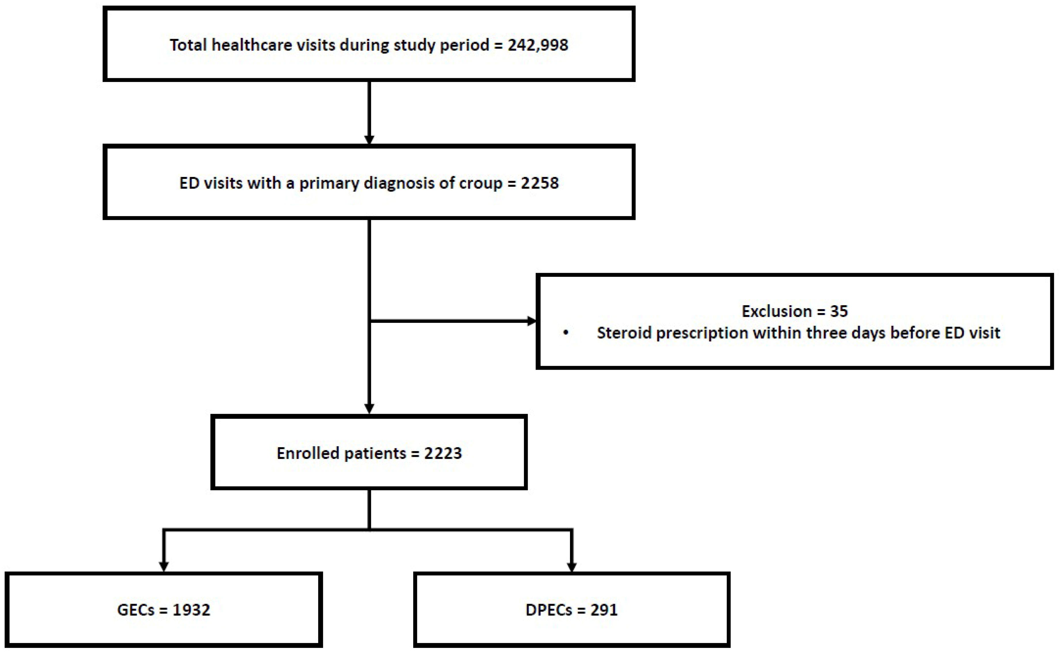 - Education and implementation of standardized national clinical guidelines are needed to optimize croup management in Korean emergency departments.
