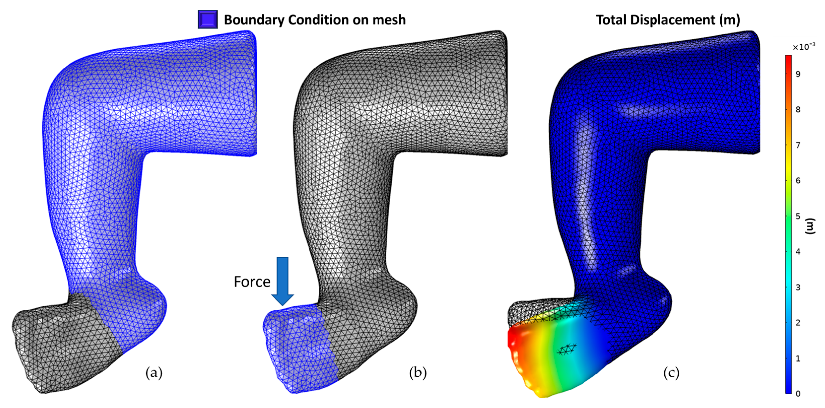 Figure 4) was exported to the COMSOL Multiphysics (version 5.5) platform [COMSOL, Inc., Stockholm, Sweden] for Finite Element Analysis.