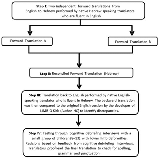 This version of LIMB-Q Kids was internationally field-tested across 16 sites in seven countries, including English-speaking nations (Australia, Canada, the USA, and the UK) as well as non-English-speaking countries where it was translated and culturally adapted accordingly (Danish [7], Finnish, German [8], Hindi [9], and Portuguese). It is important to continue to diversify these assessments to be able to include patients of all backgrounds and languages. Hence, an Israeli team collaborated with researchers at the University of British Columbia to translate and culturally adapt LIMB-Q Kids to Hebrew, employing specific adjustments to accommodate the unique characteristics of this language.
